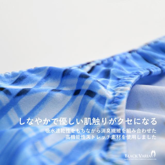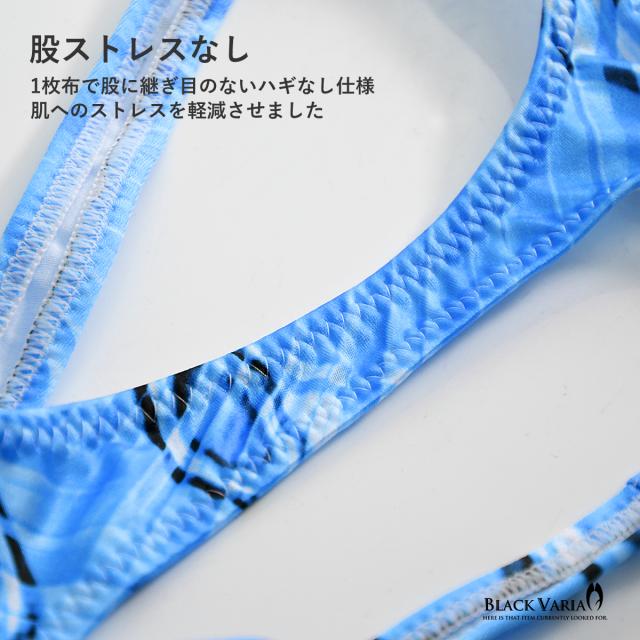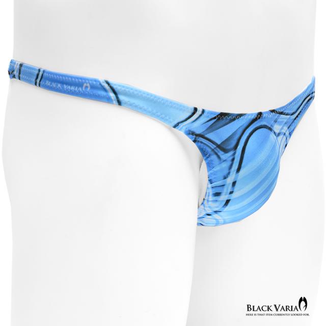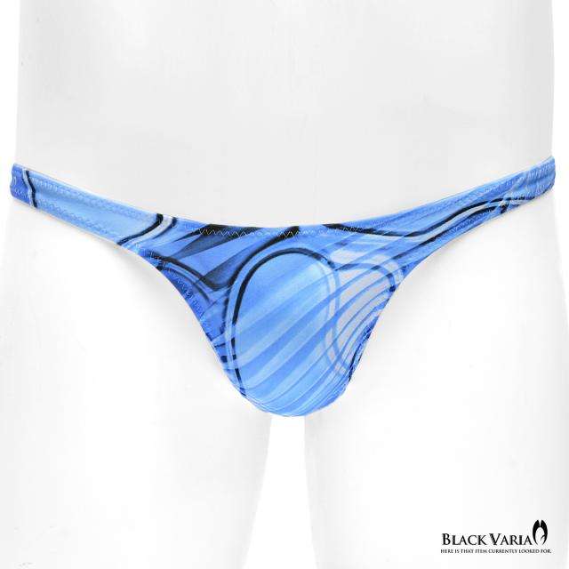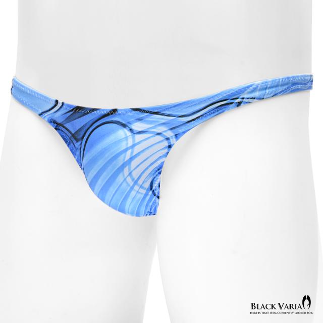 Tバック モダン柄 アート柄 模様 ヤシ 幾何学柄 下着 ビキニ ショーツ パンツ メンズ(ブルー青) tc043