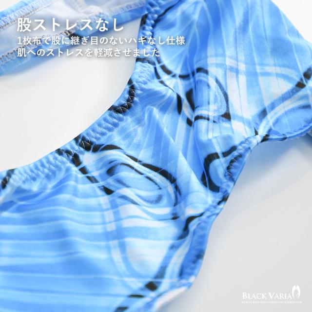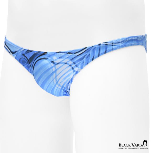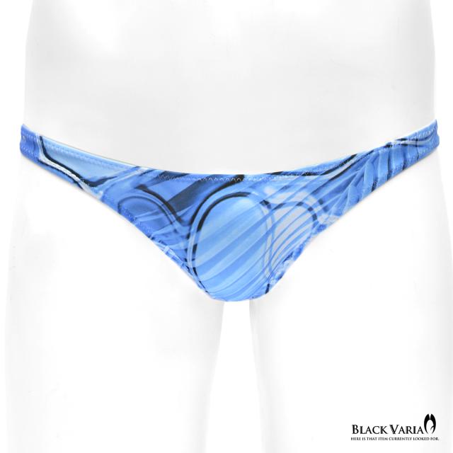 ハーフバック モダン柄 アート柄 模様 ヤシ 幾何学柄 下着 ビキニ ショーツ パンツ メンズ(ブルー青) tc044