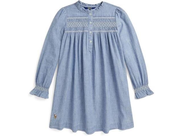 (取寄) ラルフローレン キッズ ガールズ スモック インディゴ シャンブレー ドレス (ビッグ キッド) Polo Ralph Lauren Kids girls Smocked Indigo Chambray Dress (Big Kid) New Medium Wash