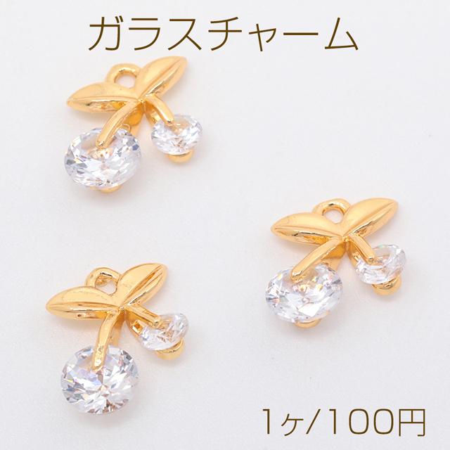 ガラスチャーム さくらんぼ チェリー ストーン付き 果物 フルーツ メタルチャーム 約10×12mm(1ヶ)