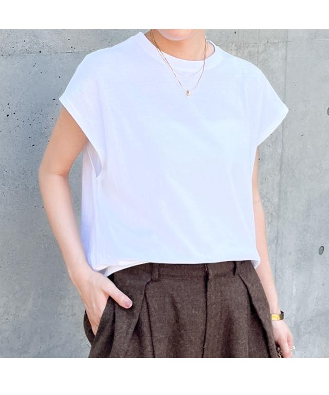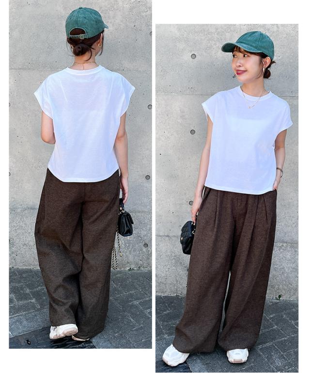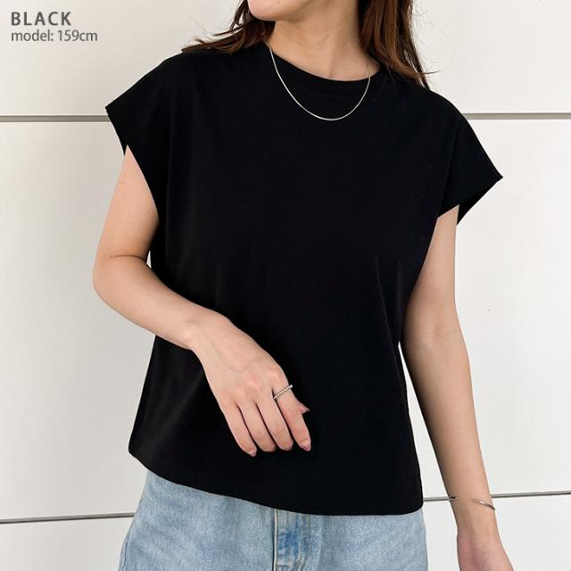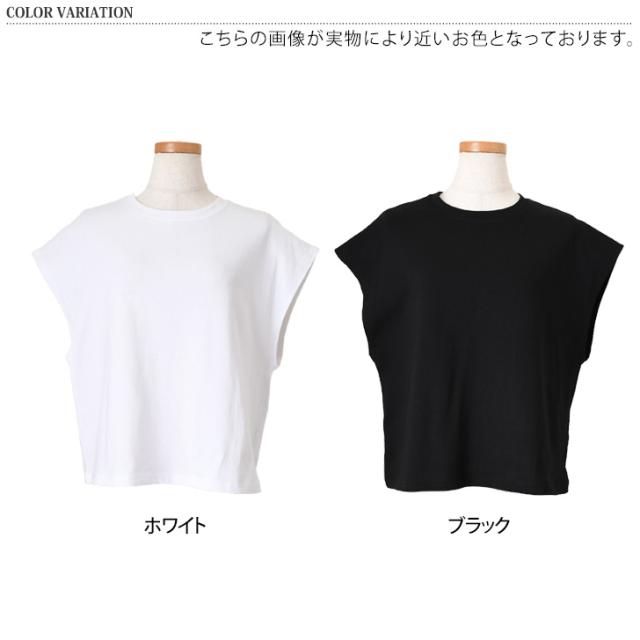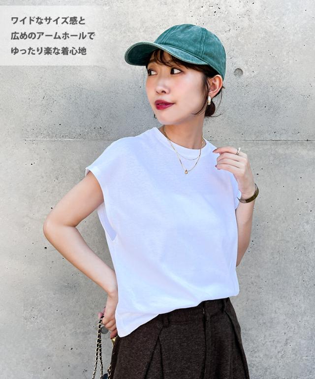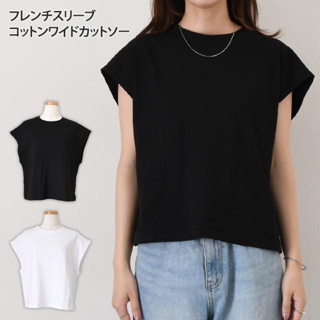 新作 フレンチスリーブベーシックコットンワイドカットソー レディース トップス Tシャツ 半袖 ノースリーブ タンクトップ ゆったり 大きめ 涼しい 薄手 夏 綿 ショート丈 おしゃれ カジュアル シンプル 白 黒