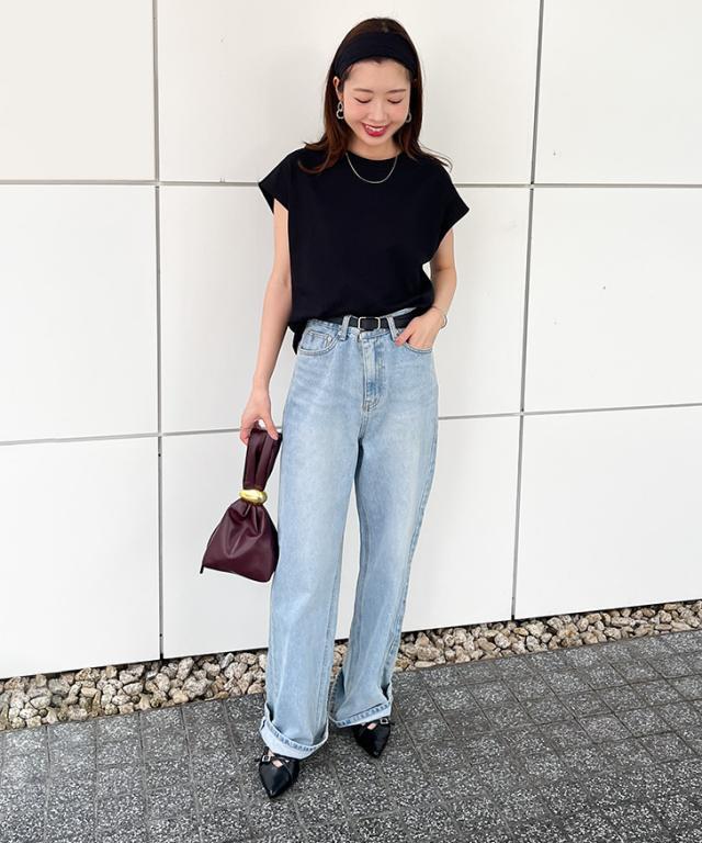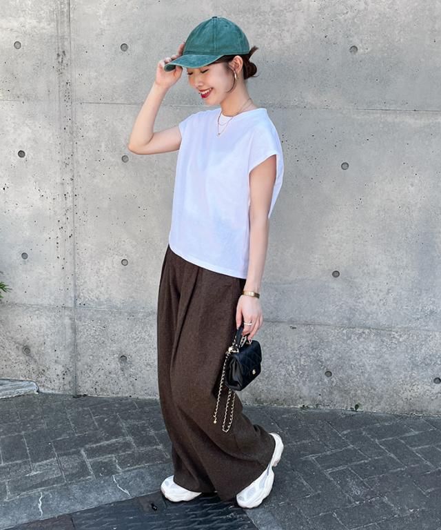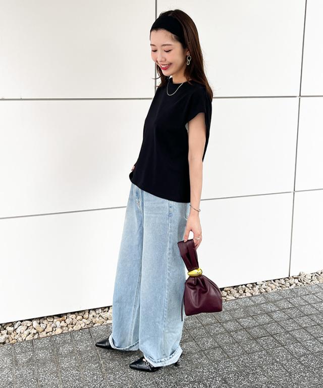 フレンチスリーブ×ショート丈でこなれ感のある着こなしに