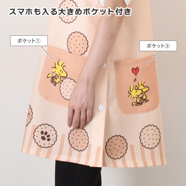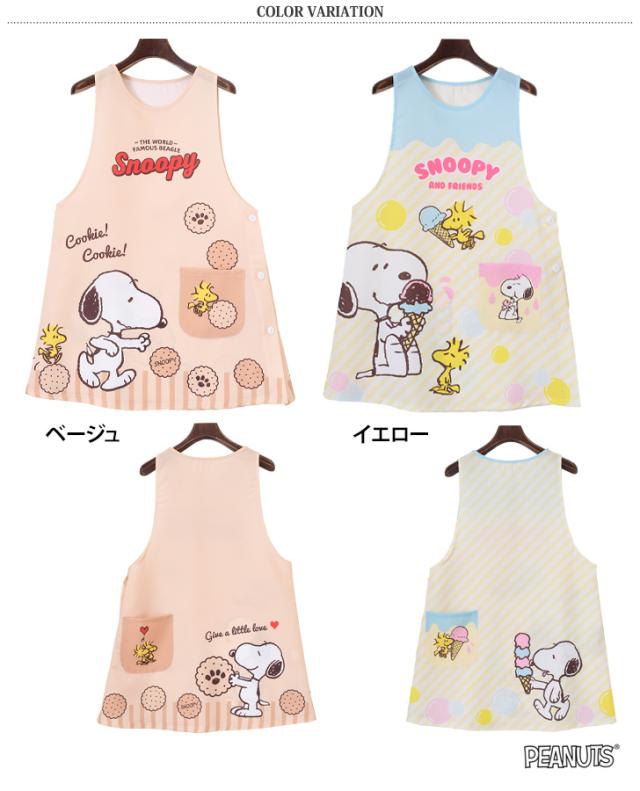 新作 スヌーピー★タバード型エプロン レディース おしゃれ かぶるだけ ラン型 かぶり 保育士 ショート丈 短い キャラクター snoopy キッチン 台所 キャラクターエプロン 大人 ポケット 大きい 大きめ
