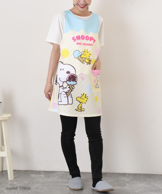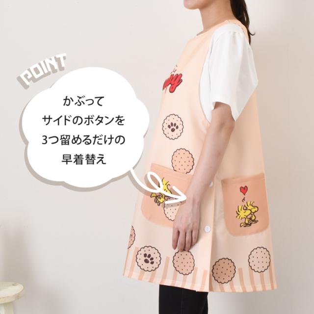 新作 スヌーピー★タバード型エプロン レディース おしゃれ かぶるだけ ラン型 かぶり 保育士 ショート丈 短い キャラクター snoopy キッチン 台所 キャラクターエプロン 大人 ポケット 大きい 大きめ