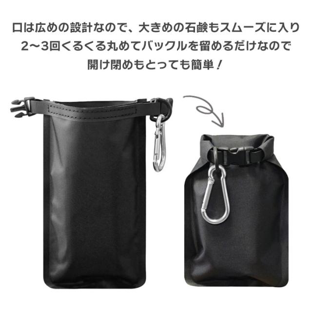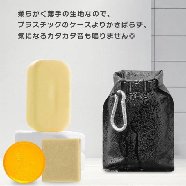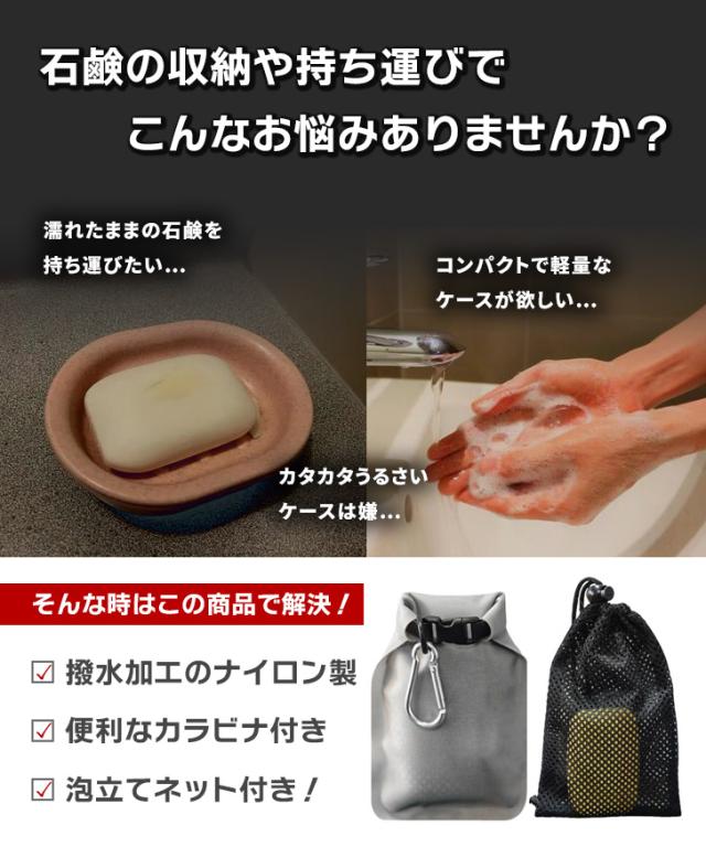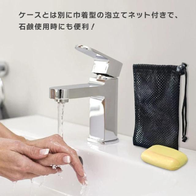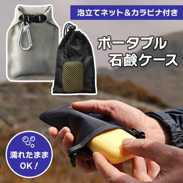 新作 泡立てネット&カラビナ付き撥水ポータブル石鹸ケース 石けんケース 石鹸置き ソープディッシュ 石鹸ネット 携帯 ち運び スリム コンパクト 巾着 ジム サウナ アウトドア 旅行 トラベル 出張 持便利グッズ