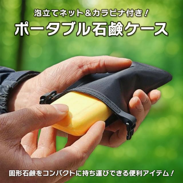 泡立てネット&カラビナ付き!ポータブル石鹸ケース