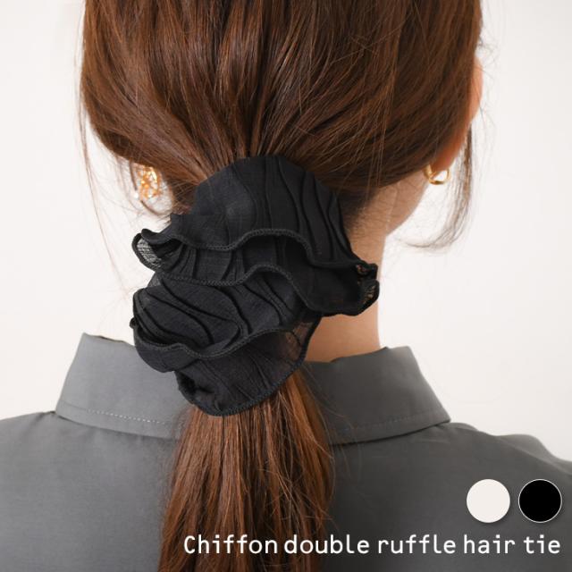 新作 シフォンプリーツダブルフリルヘアゴム レディース シュシュ ヘアアクセサリー ヘアアレンジ まとめ髪 髪留め 大人 子供 キッズ シアー シースルー おしゃれ きれいめ かわいい 韓国ファッション バレエコア