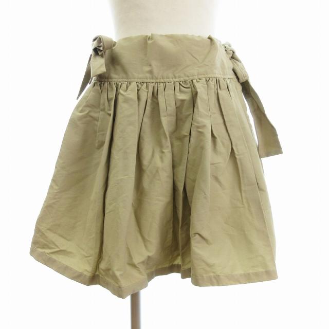 【中古】ビリティス ディ セッタン ギャザースカート ひざ丈 リボン 無地 コットン ベージュ ■FF レディース