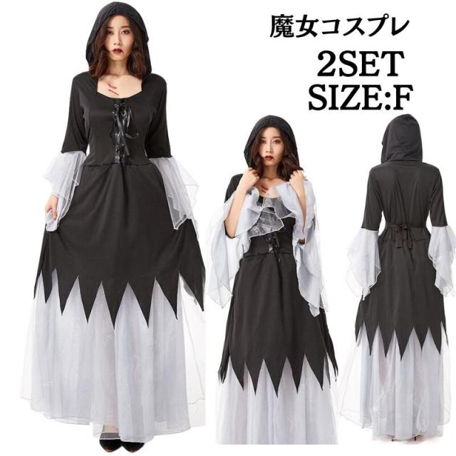 ハロウイ 魔法使い ロングドレス 帽子付き コスチューム 風衣装 仮装 悪魔 仮装用 ハロウィーン 大きいサイズ 可愛いコスチューム 仮装 黒 コスプレ衣装 大人用