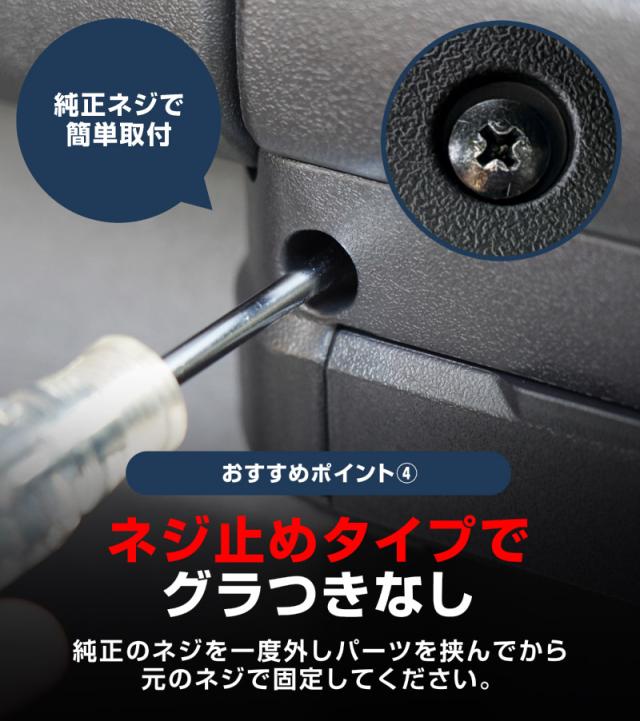 また、表面は純正インテリアに自然に溶け込む樹脂素材仕上げで、違和感なくドレスアップができます。
