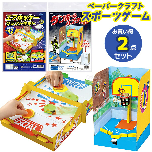 ペーパークラフト スポーツゲーム お買得 2点セット ダンボールバスケ エアホッケー クラフトキット ラッピング不可