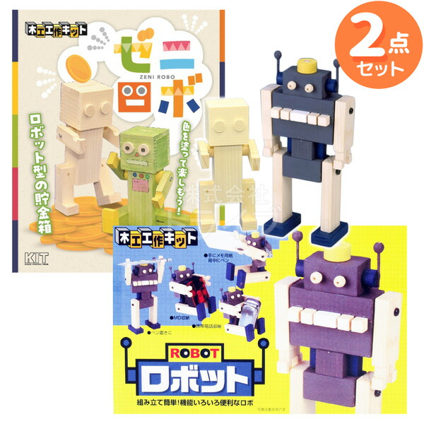 木工工作キット ロボット工作 2種セット ゼニロボ ロボット 貯金箱 スタンド ラッピング不可
