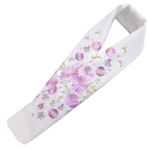 半衿 半襟 刺繍 白色地 金糸入り 薄紫菊花梅桜 日本製 振袖 成人式 卒業式 袴 着物 女性用 レディース 振袖用 小紋 洗える着物 訪問着 はかま