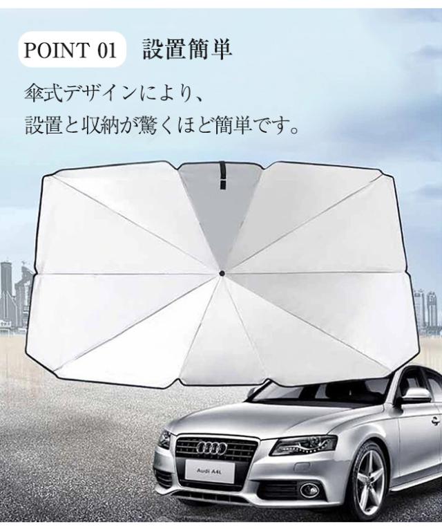 新作 車 サンシェード 傘型 フロント 車用サンシェード カーサンシェード 折りたたみ傘 日除け 日よけ 暑さ対策 遮光 断熱 収納便利 車保護