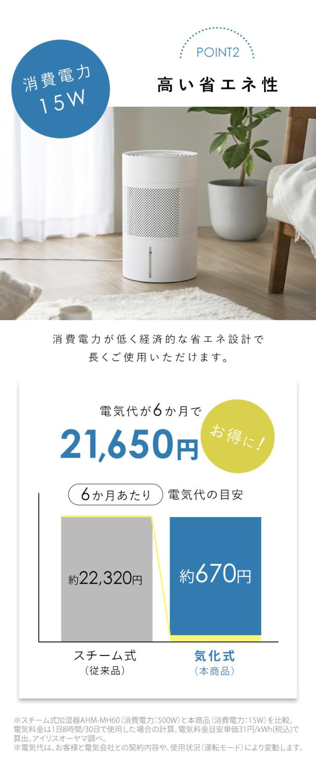 ※1 室温20℃、湿度30%の条件下での値です。室内の温度や湿度によって、加湿量は異なります。