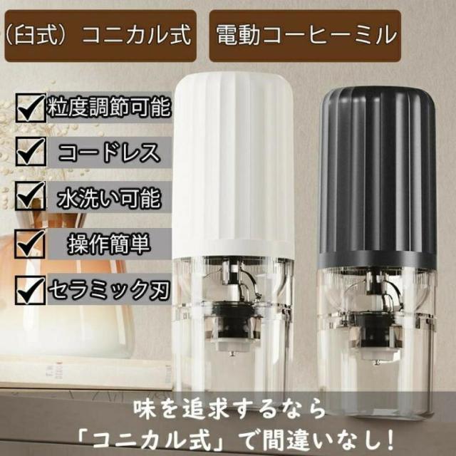 電動コーヒーミル コードレス 臼式 水洗い可能 コーヒーミル 小型 USB充電式 珈琲 自動停止 コーヒーグラインダー ミルミキサー コーヒー豆 セラミック刃