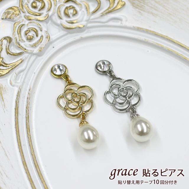 【関連ワード】貼るピアス 貼るだけ 痛くない grace貼るピアス 上品 お花 フラワー カメリア シルバー ゴールド 揺れる ぶら下がり イヤリング イアリング ピアス おしゃれ かわいい 可愛い 高見え 医療用テープ 大人っぽい きれいめ レディース パール お呼ばれ 二次会 結婚式 痛くない