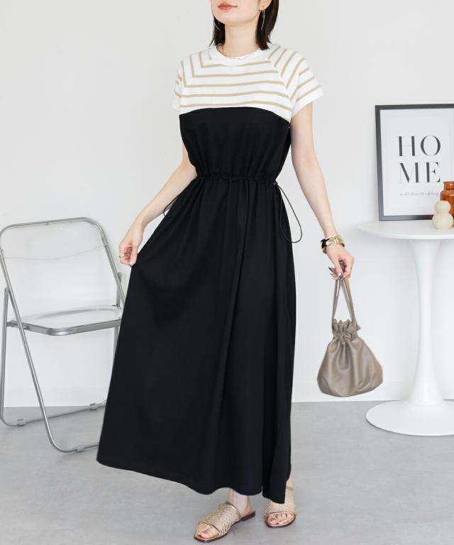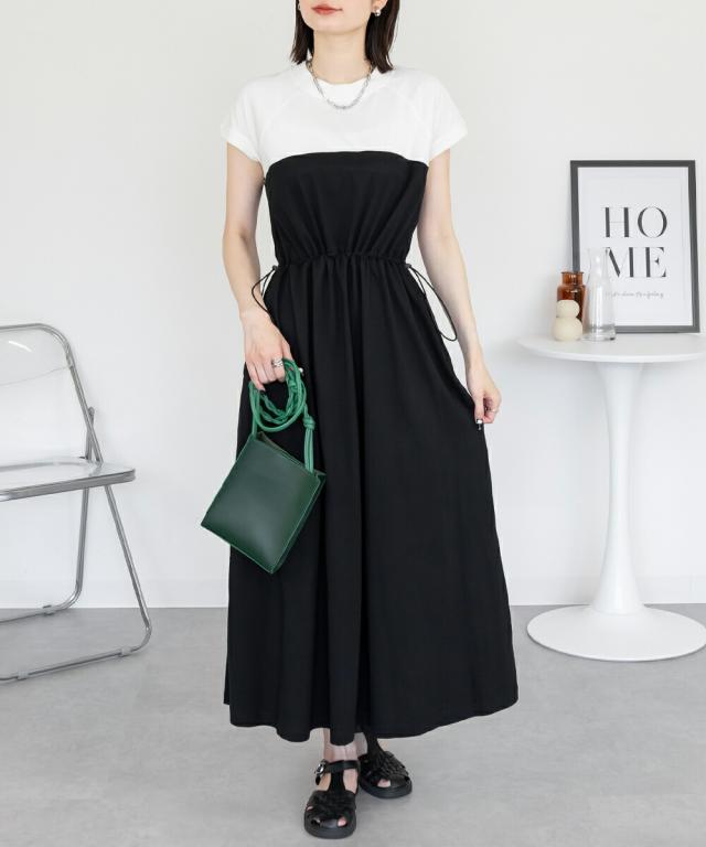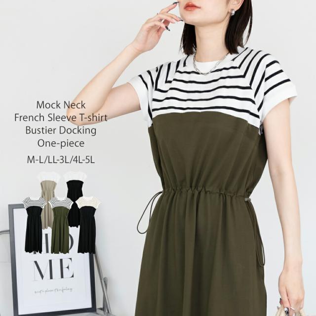 春新作 大きいサイズ レディース ビスチェ風 ドッキング ロングワンピース ウエストギャザー切替 ワンピース ワンピ 半袖 ロング マキシ ロング丈 マキシ丈 マタニティ 韓国ファッション カジュアル M L LL 3L 4L 5L