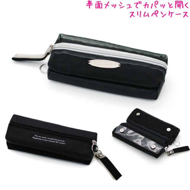 片面にメッシュ素材を採用した、機能的なペンケースです。
