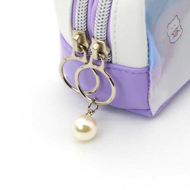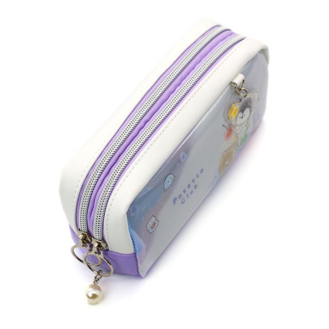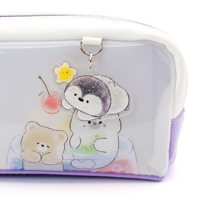 前面に乳白塩ビ素材を使用した、透け感のあるペンケースです。