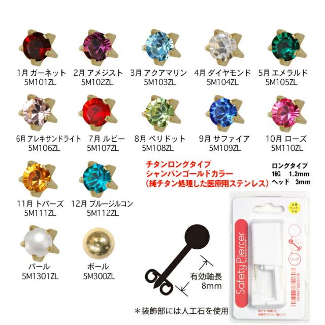 | 商品名 | JPS セイフティ ピアッサー(Safety Piercer) シャンパンゴールドカラー(純チタン処理した医療用ステンレス) チタンロングタイプ (片耳用) |