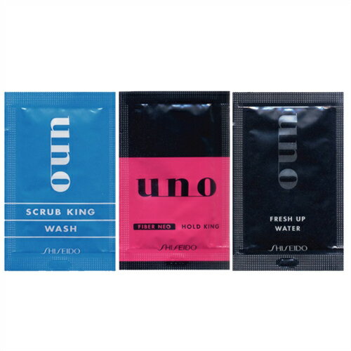 (あす着)(ネコポス)資生堂 UNO(ウーノ) 使い切りパウチ (スクラブキングウォッシュ(洗顔料)・フレッシュアップウォーター(化粧水)・ホールドキング(整髪料))(ネコポス)(ホテルアメニティ)(業務用化粧品)(送料無料)