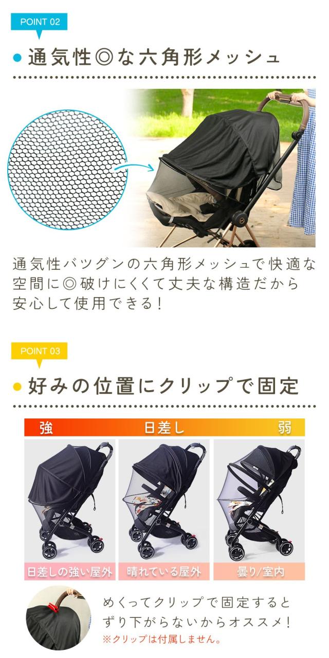 ・赤ちゃんを夏の強い日差しや虫から守るベビーカー用サンシェード