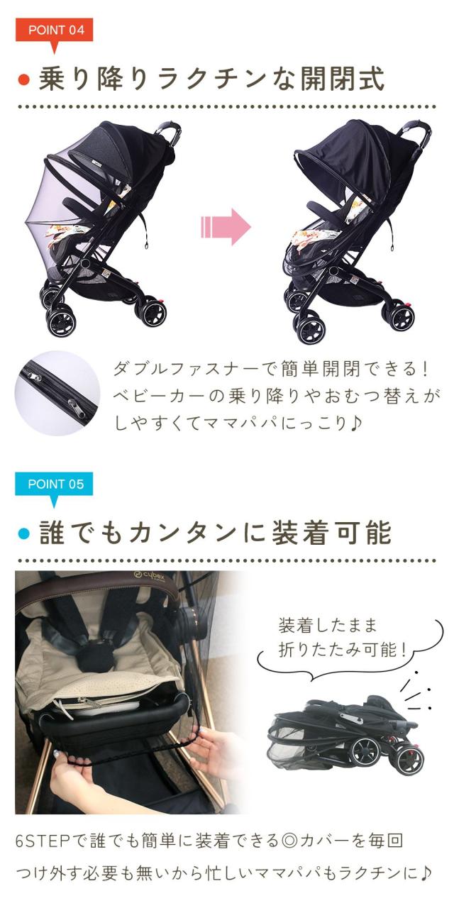 赤ちゃんの快適さと安全を第一に考えた設計で、ベビーカーにプラスするだけで安心感がアップ。
