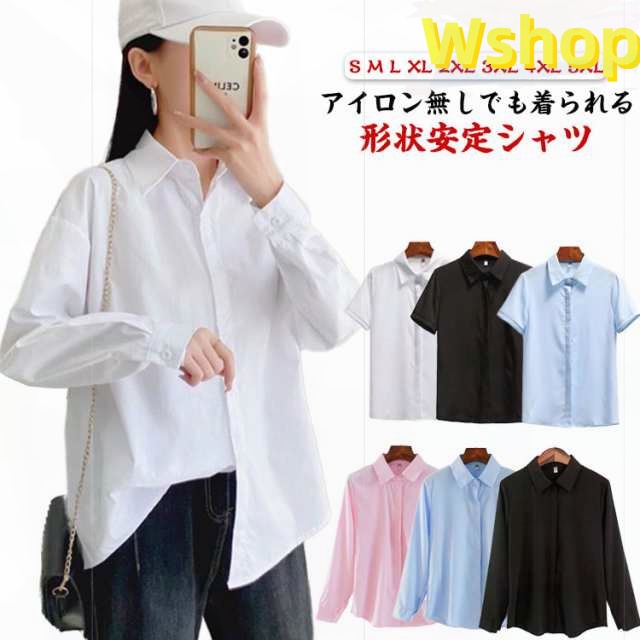 軽量仕様 SNS話題 ホワイト ワイシャツ 事務服 開襟 制服 ビジネス シワになりにくい 無地 シャツ ワイシャツ白 ノーアイロン レディース ブラウス リクルート 大人 大きいサイズ 女性 インナー 通勤 シンプル 半袖 オフィス 長袖 送料無料
