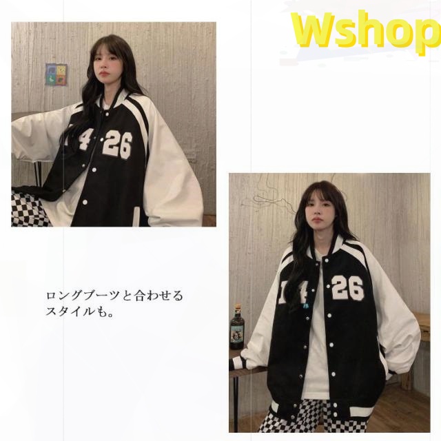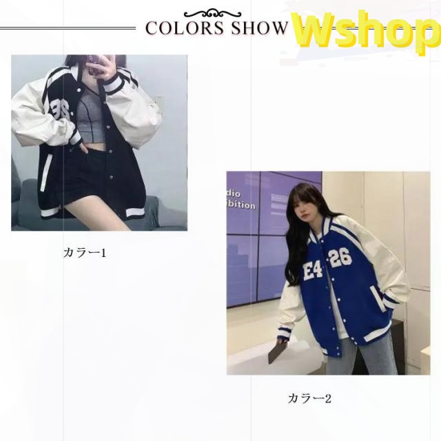 ライトアウター カジュアル スタジャン 韓国 2 アメカジ 春秋アウター プリント ストリート 送料無料 ビッグシルエット 女性 レディース ジャケット ワッペンスタジャン スタジアムジャンパー 3