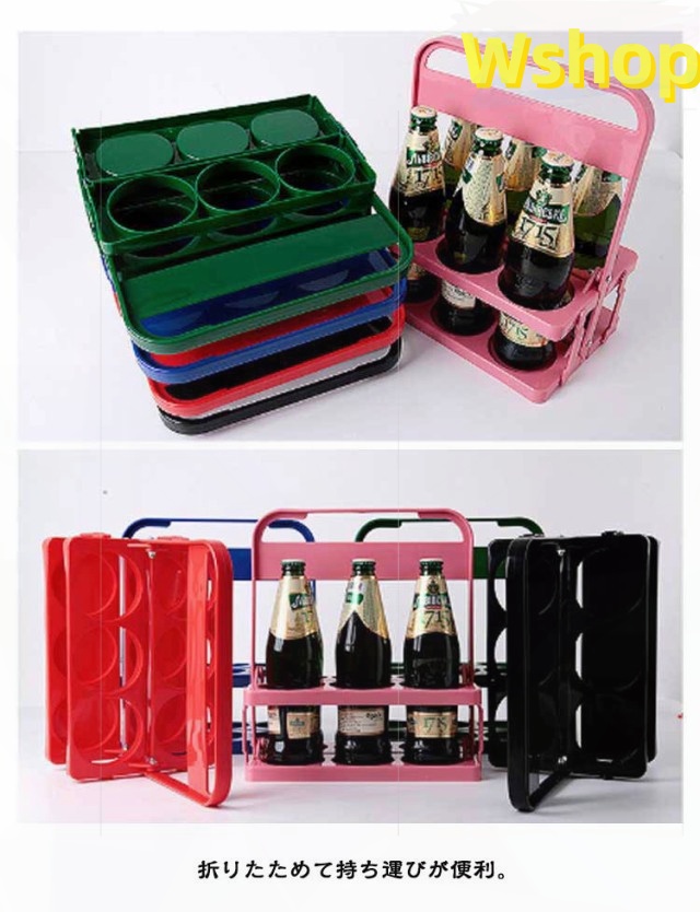 6本入 キャリア ドリンク コンパクト ボトルキャリアー ボトルキャリアー 折りたたみ ラック 缶 ペットボトル ドリンクホルダー 手提げ ラック ビール瓶 瓶 収納便利 パーティー アウトドア バー用