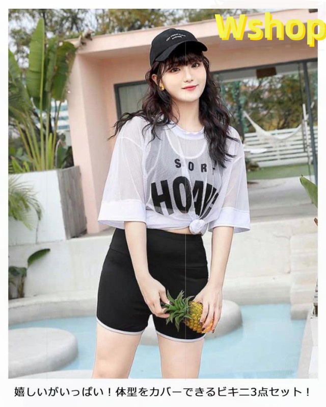 | 嬉しいがいっぱい!体型をカバーできるビキニ3点セット! 日焼け対策に気になる部分を体型カバー 気になるヒップをしっかりカバー◎ワンピースと合わせればお腹周りも隠せちゃう 涼しげのある透け感が夏にピッタリ◎ビキニの上からお洋服感覚でさらっと着れる めくれても露出は抑える◎嬉しいショートパンツ! 裾が広めなので脚の細見せ効果に期待が持てます 今年の夏はポップな水着で海やプールに出かけましょ | |