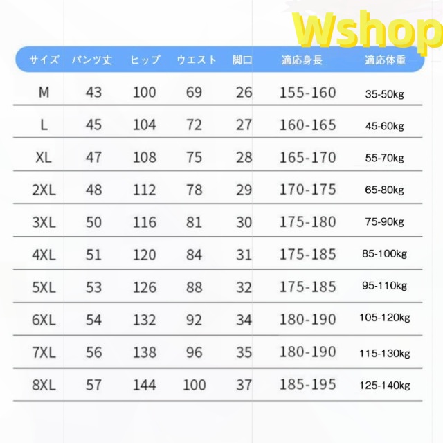 | サイズ | M L XL 2XL 3XL 4XL 5XL 6XL 7XL 8XL |