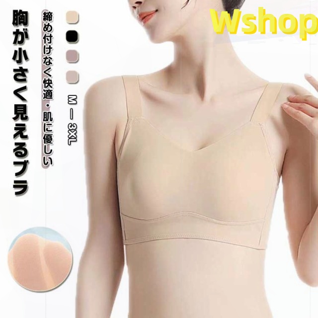 大きいサイズ 下着 胸が小さく見えるブラ レディース ノンワイヤー ブラ ノンワイヤーブラ 胸を小さく見せるブラ ブラジャー さらしブラ 薄手 着痩せ ブラジャー 胸を小さく見せるブラ 補正下着 ひんやり 脇高 夏