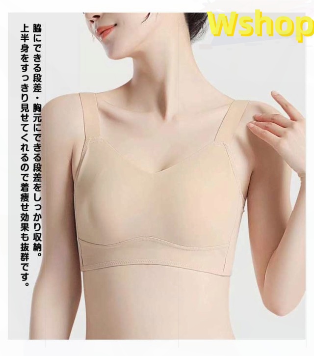 | 胸が小さく見えるブラ・締め付けなく快適・肌に優しい 脇にできる段差・胸元にできる段差をしっかり収納。 上半身をすっきり見せてくれるので着痩せ効果も抜群です。 パネルの下部でバストを下から支えて、パネル上部に分散させることで、圧迫なくバストの揺れを抑えます。 蒸れにくい小さくで薄くて軽いパッドは蒸れ熱いを防ぐので、暑い夏に使用しても息苦感じない。 【軽量でコンパクトに】丸められるので持ち運びに便利! 【ストレッチの効いたサイドベルト】脇肉をしっかリキャッチしスッキリシルエット。 | |