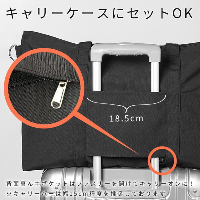 ファスナー付きで中身も安心、キャリーオンバッグとしても使用可