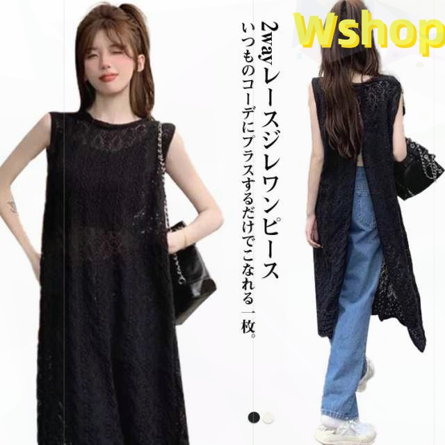 花レース 総レース 可愛い ニットベスト 体型カバー 羽織り 袖なし ノースリーブ マキシ丈 ワンピース ロング丈 レディース レイヤード 旅行 ロングジレ ベスト きれいめ ベストワンピース リゾート 重ね着 マキシ丈 2