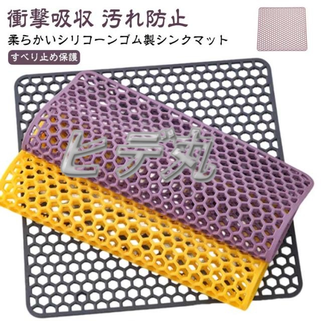 | 柔らかいシリコーンゴム製シンクマット 熱やキズからシンクを保護。 テーブルのキズ?音の防止。 ガラス?陶器などのキズ防止。 水はけが良く、お手入れしやすい形状。 小さめのサイズなのでミニキッチンでも使用できる。 | |