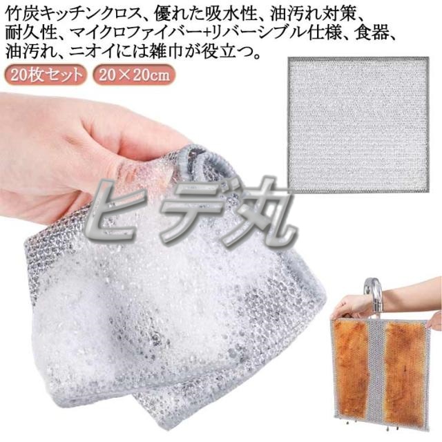 金属ワイヤー かきとる 竹炭両面金属クリーニングクロス 20枚組ふきん リバーシブル20×20cm竹炭キッチンクロス ワイヤーふきん 両面使用 傷を着けずに 金属ふきん 食器洗い メッシュ クロス 乾湿両用 ワイヤーふきん 吸水性 油汚れ対策 鋼食器洗い布 多目的 家庭用