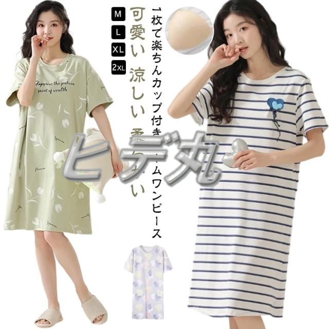 薄手 カップ付き 女性 かわいい レディース パジャマ 部屋着 レディース ワンピース ロングTシャツ 半袖 ルームワンピース 部屋着 リラックスウェア 夏 可愛い ゆったり 膝丈 涼しい 柔らかい 春夏 ルームウェア 寝間着 寝巻き