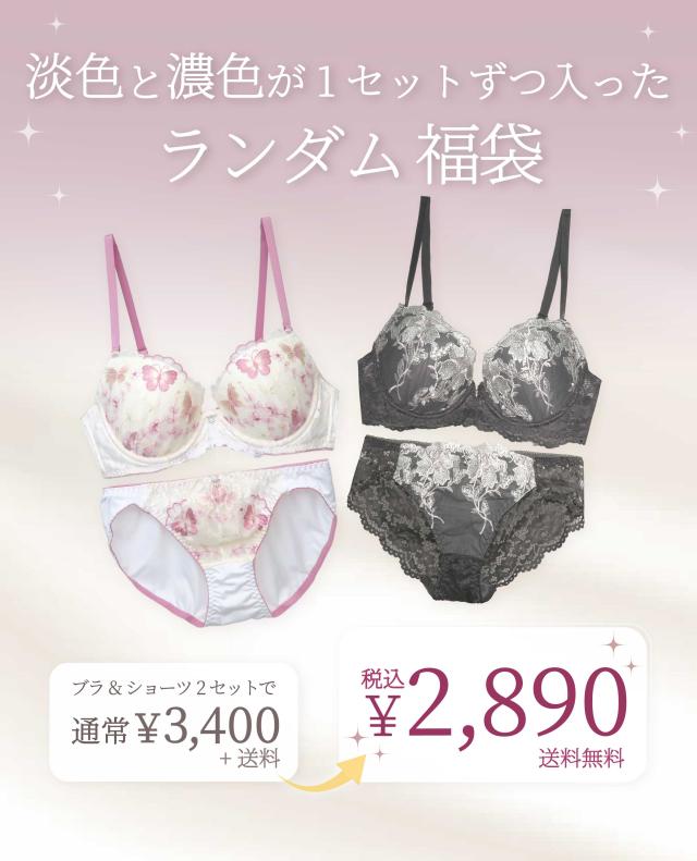 ブラジャー ショーツ 【濃色・淡色 2枚セット】 デザイン ランダム 下着 福袋 2026送料無料 A70 - F75 [メール便不可]【大きいサイズ ブラセット 下着 レディース 上下セット 】