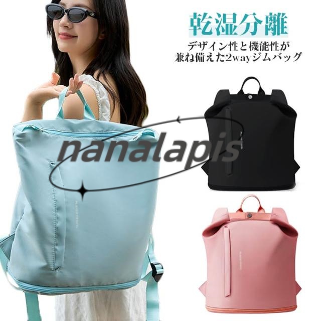 | フォルムアレンジ自在? デザイン性と機能性が兼ね備えた2wayジムバッグ。 濡れたものと乾いたものを分けられる防水ポケット付きで、濡れたタオルなど困らず収納できます。 底面にはシューズ専用収納スペースを装備しているので、靴と他の荷物を分けて収納できて衛生的です。 撥水加工で水や汚れにも強く、雨の日も安心。水を弾くので汚れもサッと拭けてお手入れ簡単です。 リュックとして背負っても、手持ちバッグとしても使える2WAY仕様だから、コーデに合わせてスタイルチェンジできます。 シンプルでスタイリッシュなデザインで、通学バッグや普段のお出かけ、マザーズバッグとしてもおすすめです。ジムデビューや夏のレジャーにも、ぜひ取り入れてみてください! 無地おしゃれなデザイン、中学生や高校生、大人に年齢を問わず、だれでもおしゃれに使いまわせます。 | |