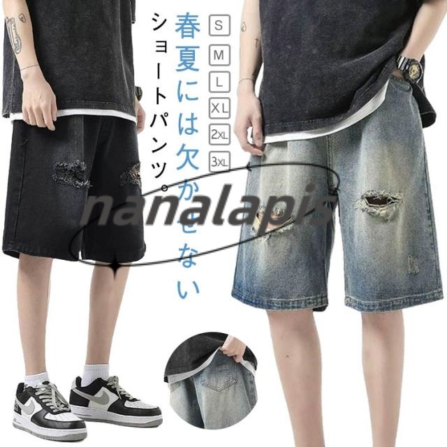 カジュアル b系 デニムパンツ ショートパンツ デニムショーツ ジーンズ Gパン 5分丈 メンズ ジーパン おしゃれ ストリート系 ダメージ加工 アメカジ S M L XL 2XL 3XL 4XL