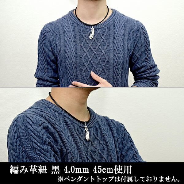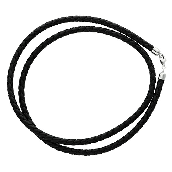 牛革紐 四つ編み 黒 4.0mm 約40cm〜60cm ネックレス シルバー925 金具
