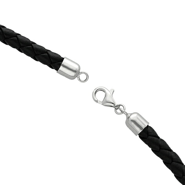 牛革紐 四つ編み 黒 4.0mm 約40cm〜60cm 革ひも ネックレス 革紐 シルバー925 金具 レザー チョーカー 皮紐 シルバー メンズ レディース 男性 女性