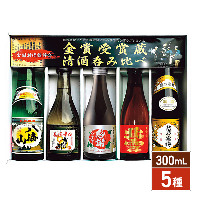 新潟 金賞受賞 蔵 飲み比べ 5種セット 300mL×5本 八海山 吉乃川 加賀の井酒造感謝 北雪金星 越乃寒梅 化粧箱入 ギフト 贈答 贈り物 プレゼント 日本酒