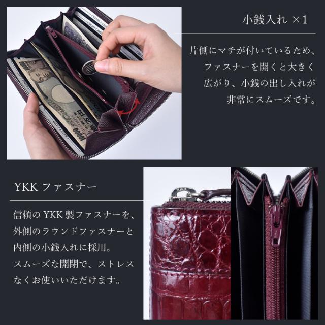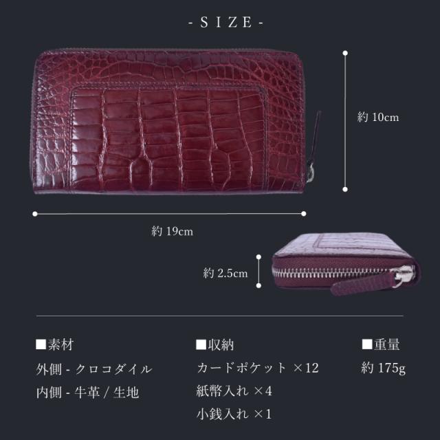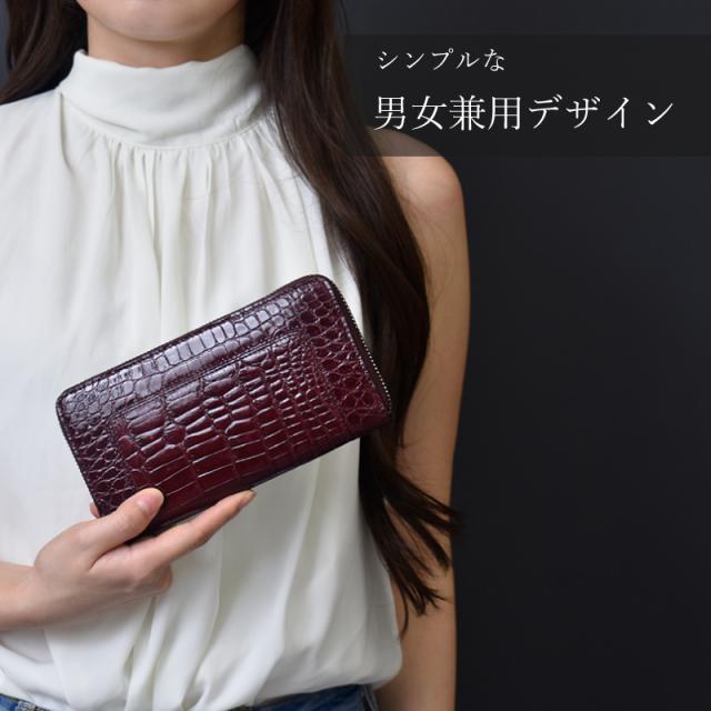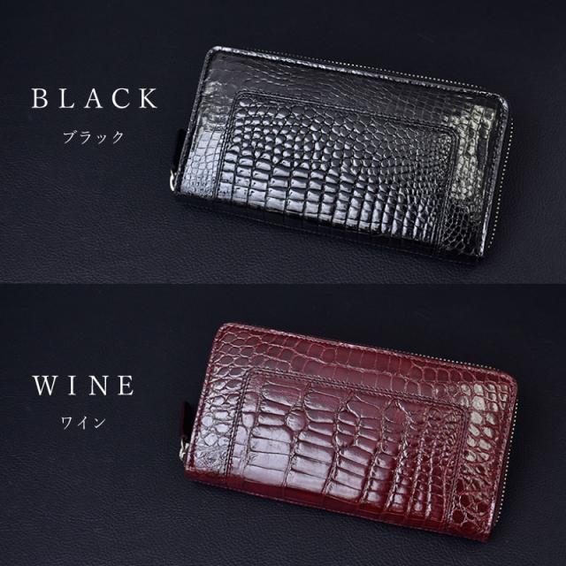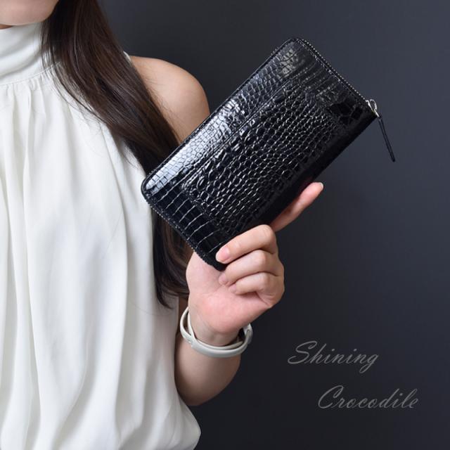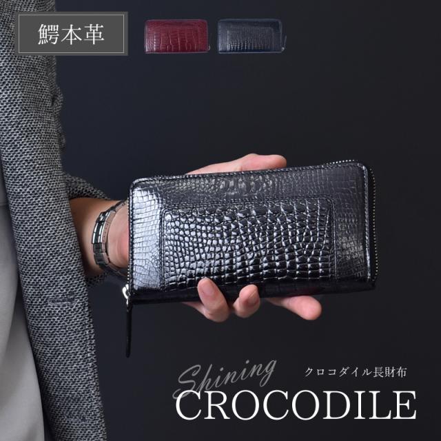 クロコダイル シャイニング 長財布 メンズ レディース 本革 ラウンドファスナー 艶あり 鰐革 おしゃれ スリム 軽い ブラック ワイン シャイニングクロコ ワニ革 軽量 カード収納 レザー 大人 上品 男性 女性 人気 金運 風水 縁起 開運 一粒万倍日 ギフト 送料無料