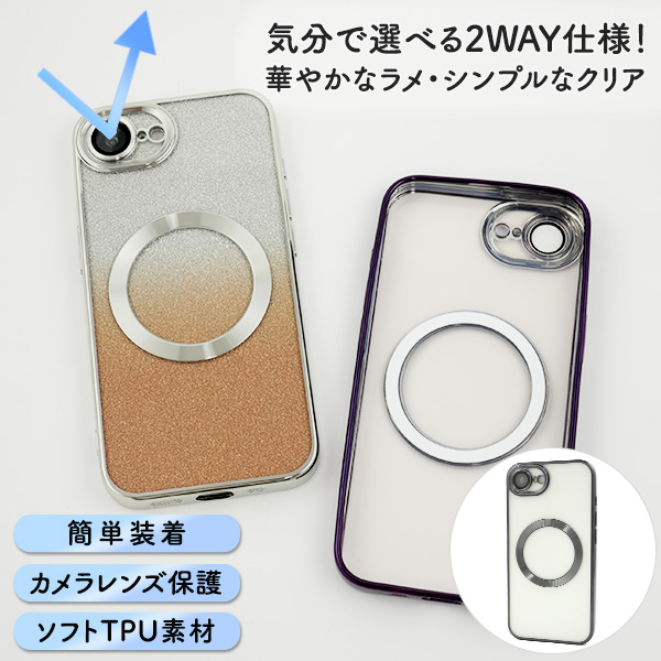 スマホケース iPhone16e MagSafe対応 インナーシート付ラメケース ソフトケース アイフォン16e マグセーフ対応 柔らかい TPU 背面 保護 カバー 光沢 シンプル アイホン ハンドメイド スマホカバー アイフォン iPhone 16e アイフォン16e おしゃれ レディース