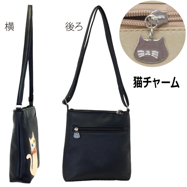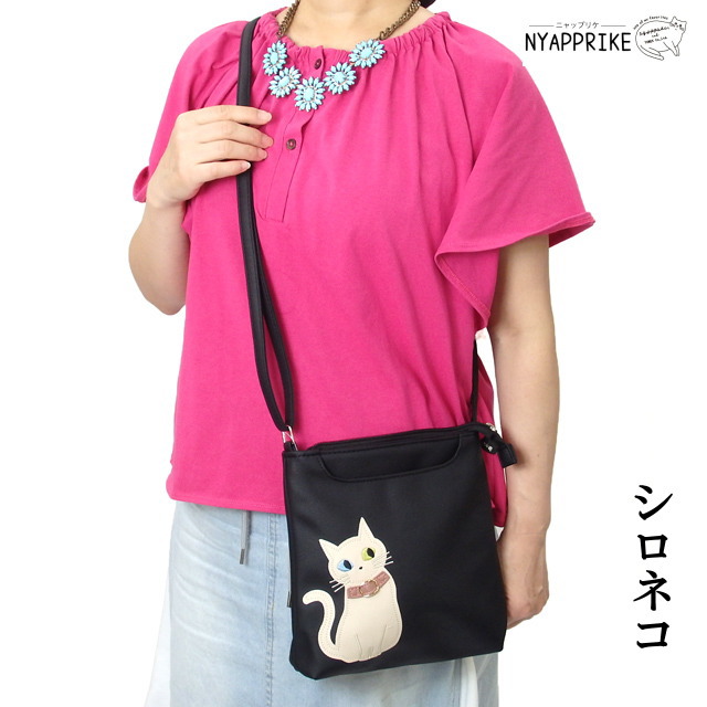ショルダーバッグ ポシェット サコッシュ レディース 斜め掛け 猫柄 合皮 収納力 ポケット 軽量 便利 かわいい おしゃれ 猫雑貨 ネコグッズ 猫好き ギフト プレゼント 【 誕生日 】