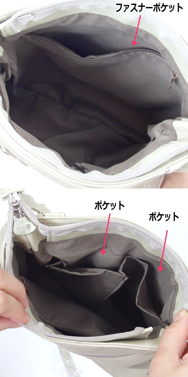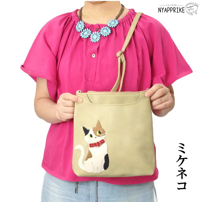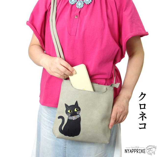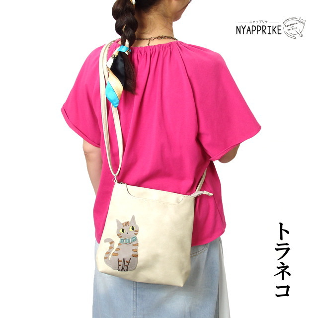 猫ちゃんのアップリケがポイントの ショルダーバッグ です。